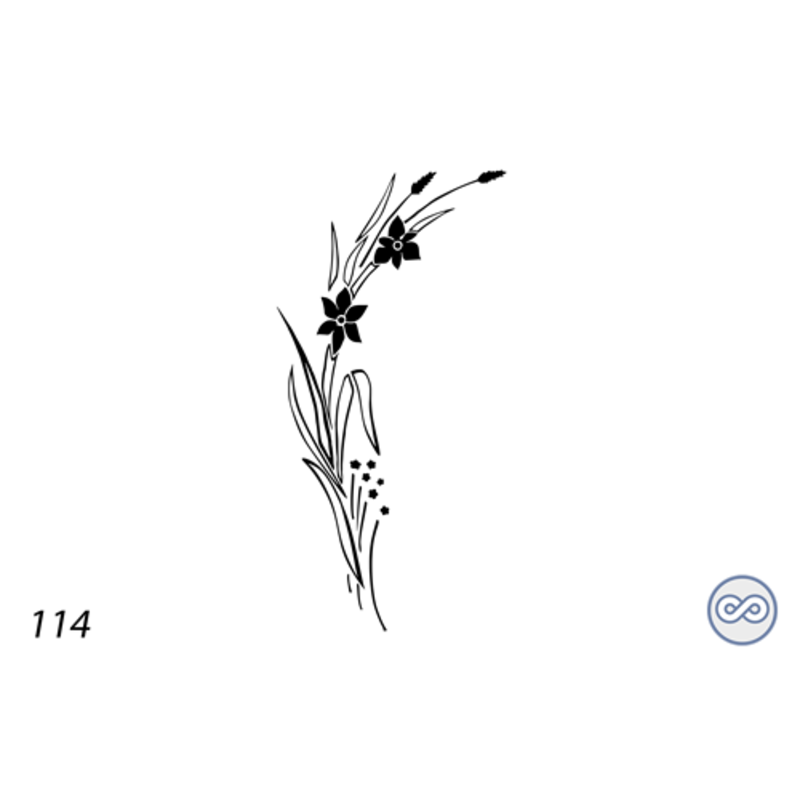 Deze afbeelding van veldbloemen kan op een grafsteen geplaatst worden. De afbeelding wordt ingeschilderd in dezelfde kleur als de tekst op de grafsteen.