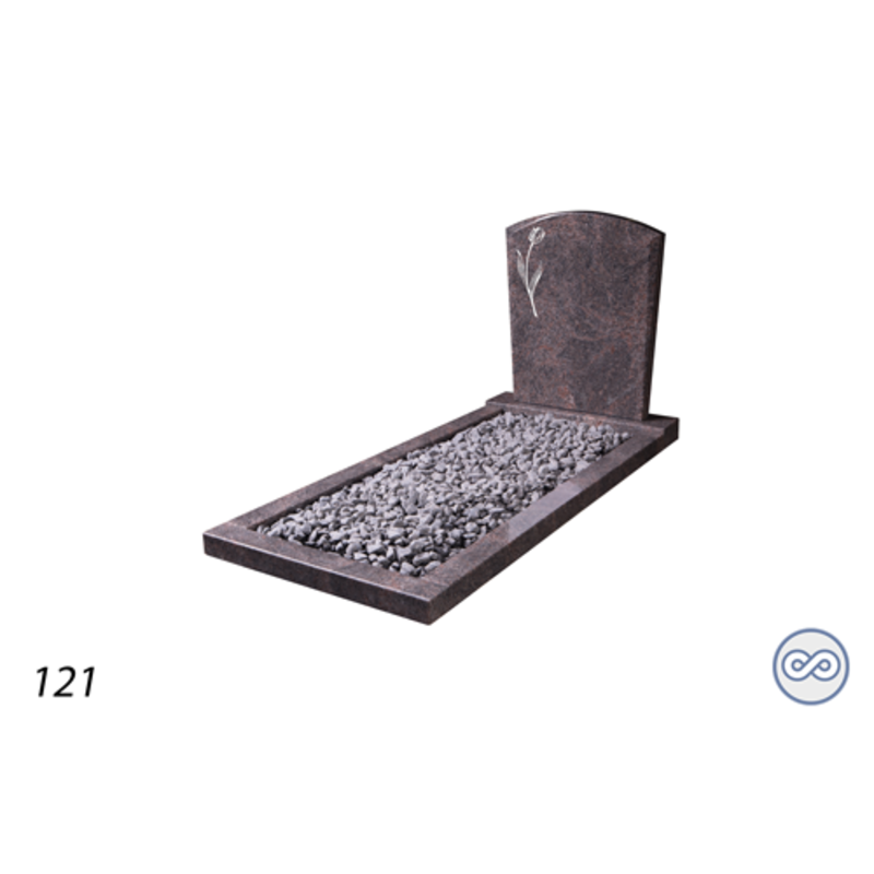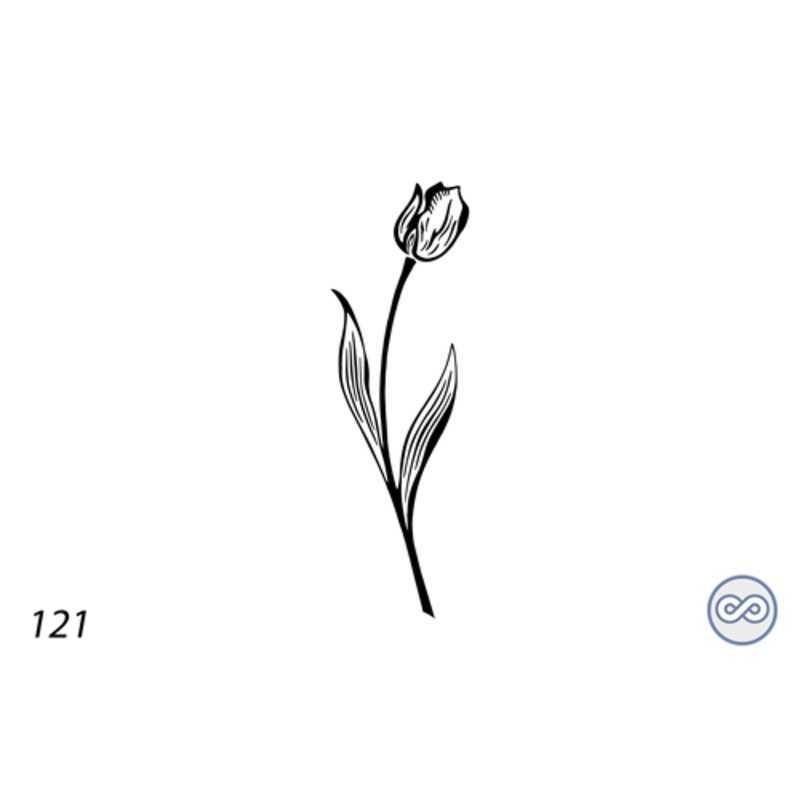 Deze afbeelding van een enkele tulp kan op een grafsteen geplaatst worden. De afbeelding wordt ingeschilderd in dezelfde kleur als de tekst op de grafsteen.