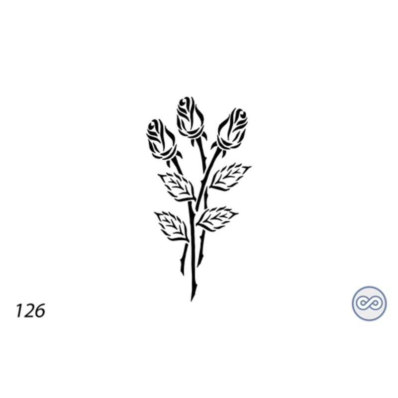 Deze afbeelding van drie rozen kan op een grafsteen geplaatst worden. De afbeelding wordt ingeschilderd in dezelfde kleur als de tekst op de grafsteen.