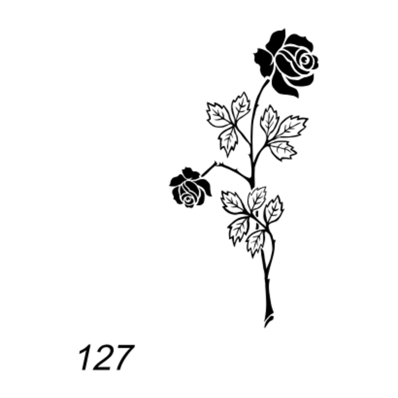 Deze afbeelding van een geknakte roos kan op een grafsteen geplaatst worden. De afbeelding wordt ingeschilderd in dezelfde kleur als de tekst op de grafsteen.