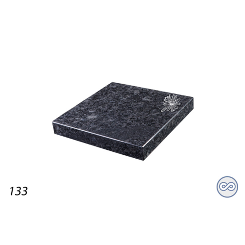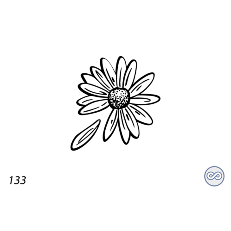 Deze afbeelding van een margriet kan op een grafsteen geplaatst worden. De afbeelding wordt ingeschilderd in dezelfde kleur als de tekst op de grafsteen.