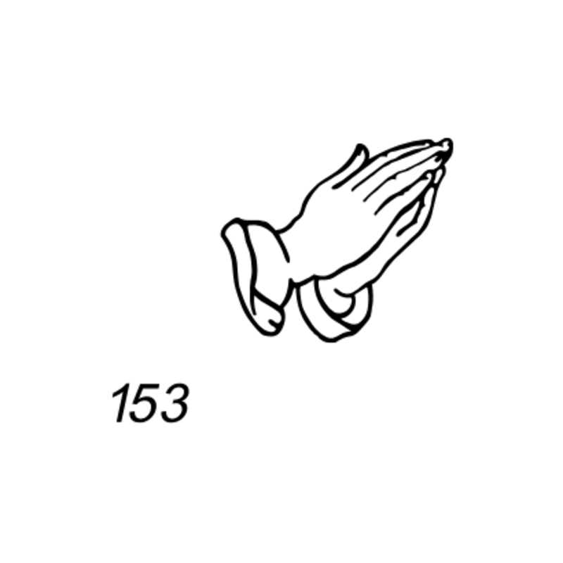Deze afbeelding van biddende handen kan op een grafsteen geplaatst worden. De afbeelding wordt ingeschilderd in dezelfde kleur als de tekst op de grafsteen.