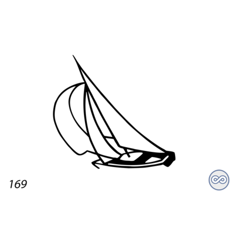 Deze afbeelding van een zeilboot kan op een grafsteen geplaatst worden. De afbeelding wordt ingeschilderd in dezelfde kleur als de tekst op de grafsteen.