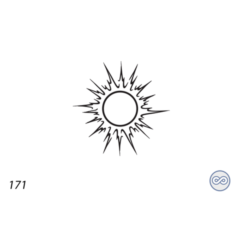 Deze afbeelding van een zon kan op een grafsteen geplaatst worden. De afbeelding wordt ingeschilderd in dezelfde kleur als de tekst op de grafsteen.