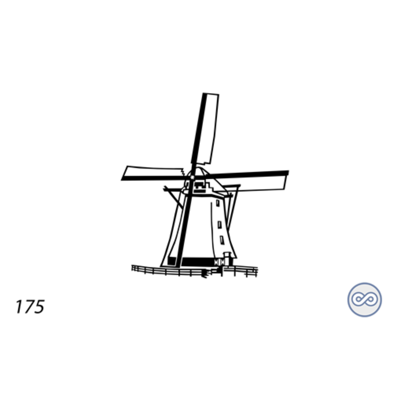 Deze afbeelding van een molen kan op een grafsteen geplaatst worden. De afbeelding wordt ingeschilderd in dezelfde kleur als de tekst op de grafsteen.