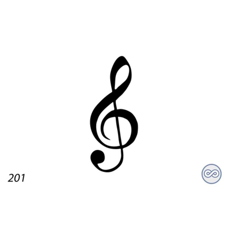 Deze afbeelding van een g-sleutel kan op een grafsteen geplaatst worden. De afbeelding wordt ingeschilderd in dezelfde kleur als de tekst op de grafsteen.