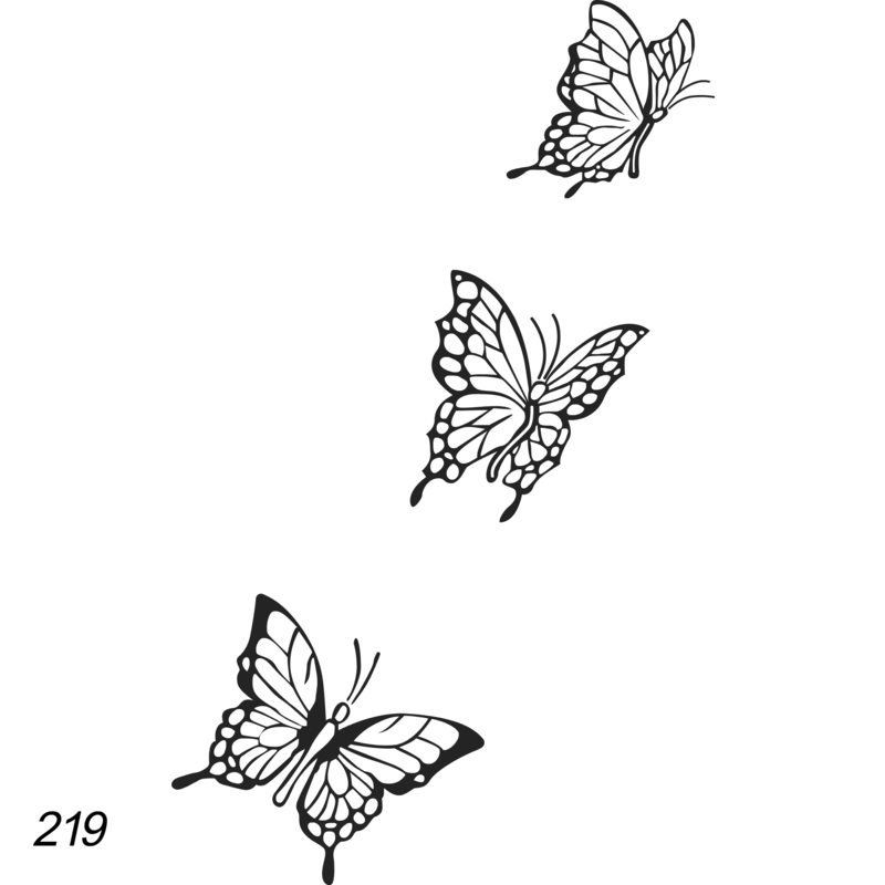 Deze afbeelding van een vlinders kan op een grafsteen geplaatst worden. De afbeelding wordt ingeschilderd in dezelfde kleur als de tekst op de grafsteen.