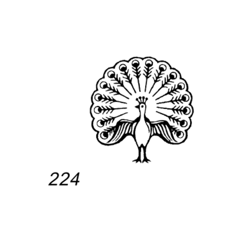Deze afbeelding van een pauw kan op een grafsteen geplaatst worden. De afbeelding wordt ingeschilderd in dezelfde kleur als de tekst op de grafsteen.