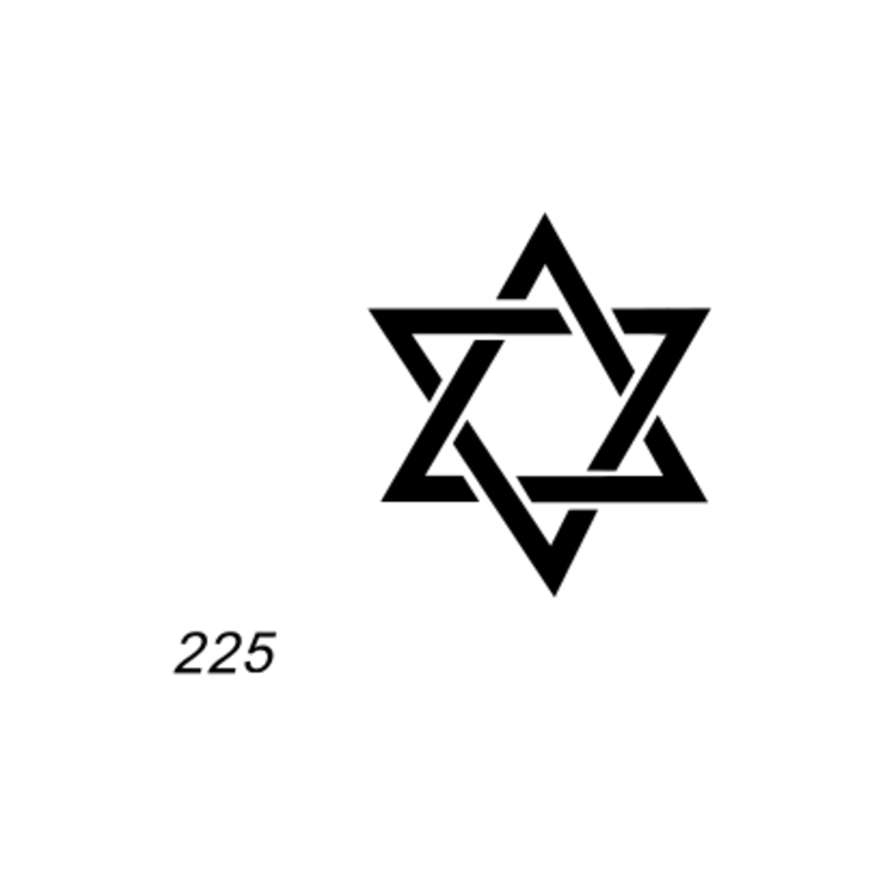 Deze afbeelding van een davidster kan op een grafsteen geplaatst worden. De afbeelding wordt ingeschilderd in dezelfde kleur als de tekst op de grafsteen.