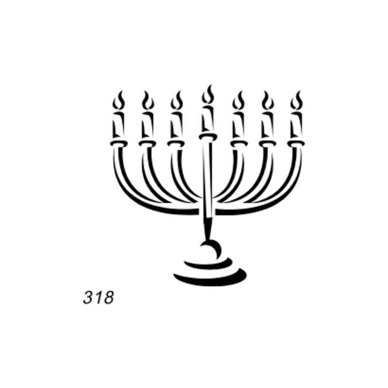 Deze afbeelding van een kandelaar (menora) kan op een grafsteen geplaatst worden. De afbeelding wordt ingeschilderd in dezelfde kleur als de tekst op de grafsteen.