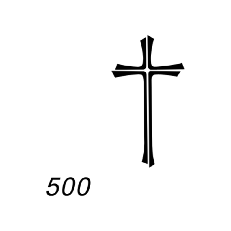 Deze afbeelding van een kruis kan op een grafsteen geplaatst worden. De afbeelding wordt ingeschilderd in dezelfde kleur als de tekst op de grafsteen.