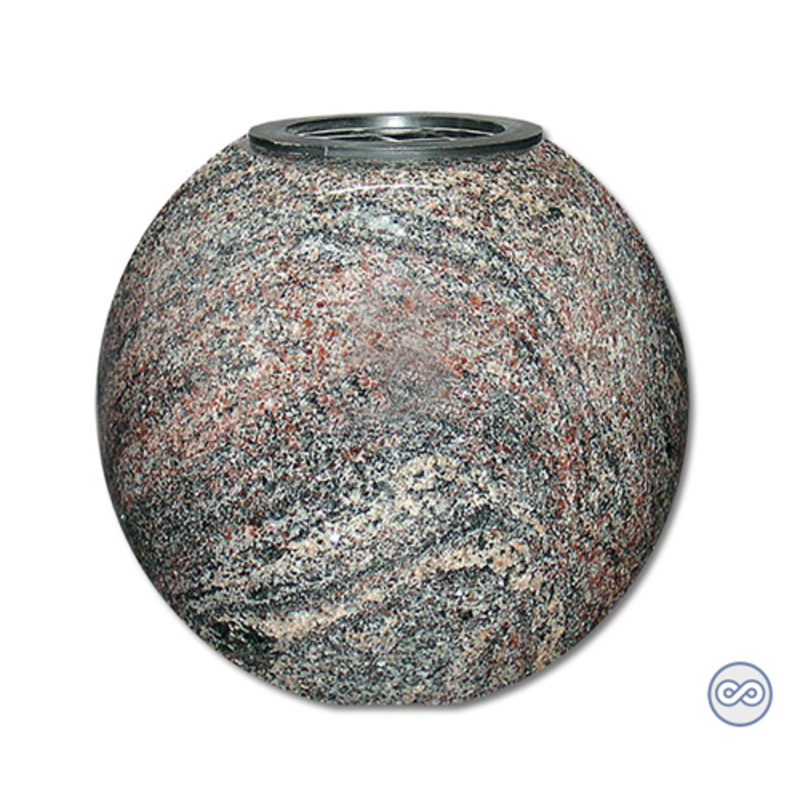 Deze vaas is bolvormig met een platte onderkant. De kleur van deze vaas is vergelijkbaar met de kleur Himalaya Blue waar sommige van onze grafstenen van gemaakt zijn. In de vaas kunnen mooie bloemen gedaan worden. Zo kan het graf extra persoonlijk gemaakt worden.