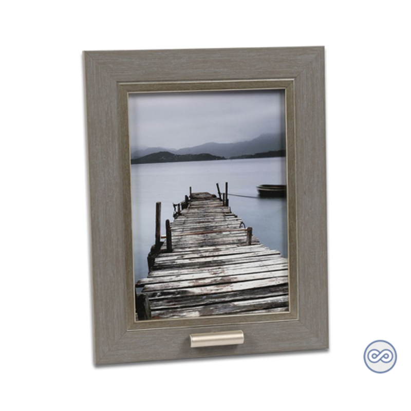 Deze donkere, grijsbruine fotolijst heeft en hoogte van 23 centimeter en een breedte van 18 centimeter. De fotolijst heeft een buisje waar as in bewaard kan worden en daarom is deze lijst het meest geschikt om een staande foto in te plaatsen. Deze foto kan de afmetingen van 13 bij 18 centimeter hebben.