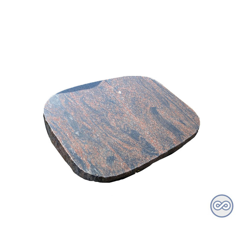 De vermelde prijs van deze grafsteen is altijd inclusief plaatsing op de begraafplaats. Granieten spiegelkei met ruwe rand. 65 x 52 x 15(5)