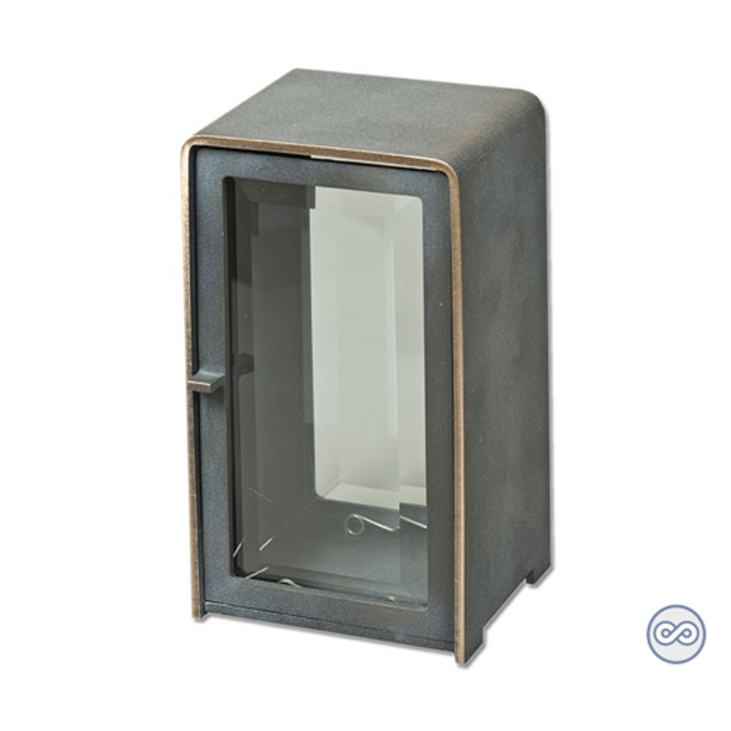 Deze grijze graflantaarn heeft afgeronde hoeken. De lantaarn heeft twee glazen zijdes en een afmeting van 20 centimeter. Met deze lantaarn is het mogelijk om een kaarsje te branden op het graf zonder dat er kaarsvet op de grafsteen komt. Kaarsvet is namelijk erg lastig van de grafsteen te verwijderen en kan het materiaal aantasten.