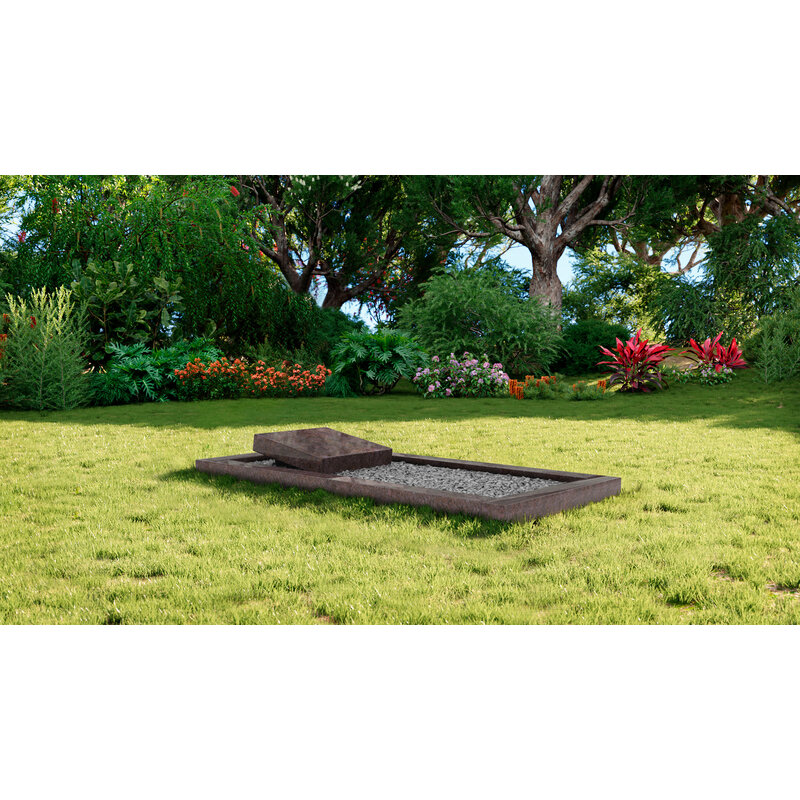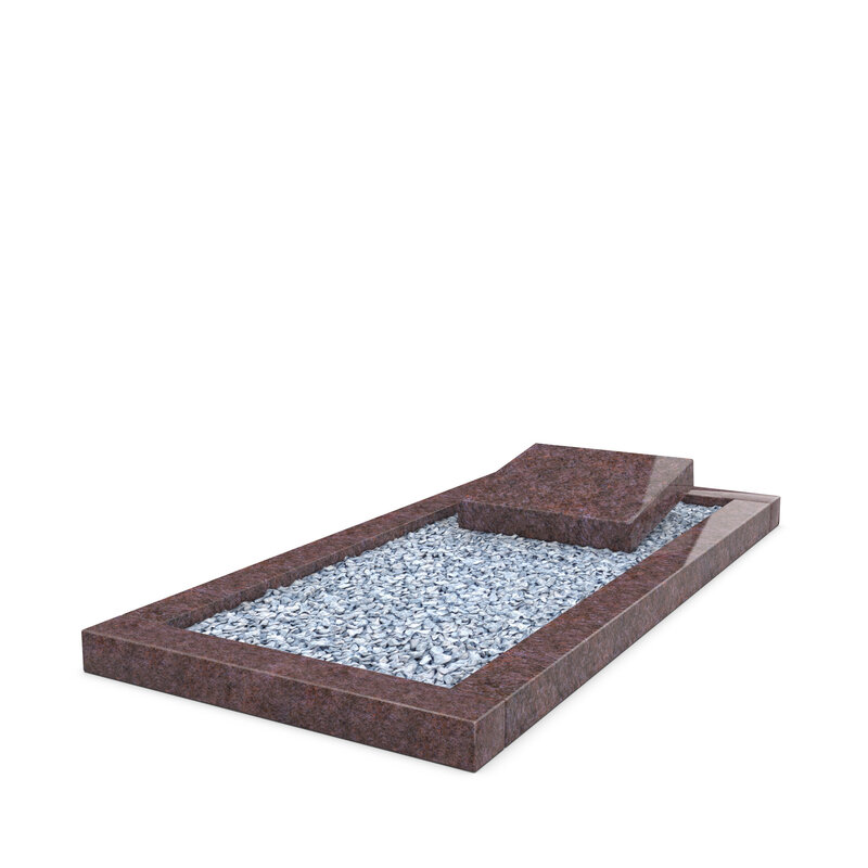 De liggende grafsteen in de kleur Himalaya Blue is gemaakt van graniet. De afwerking is gepolijst, waardoor het een glanzende oppervlakte heeft. De kleur Himalaya Blue kenmerkt zich door zijn bruine kleur met een lichtbruine/rode vlam over het geheel. De omranding van deze grafsteen is ook in Himalaya Blue graniet en wordt met licht grind opgevuld. Door de lichte kleur van het grind, geeft het een licht accent aan het geheel. Dit maakt het totaalplaatje erg stijlvol.