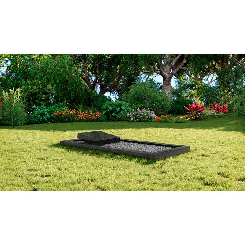 Liggende grafsteen Steel Grey met omranding en licht grind
