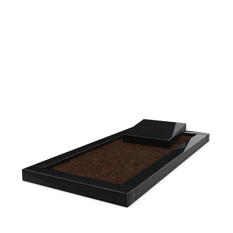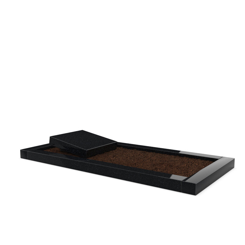 De liggende grafsteen is van het graniet Zwart Graniet. De kleur Zwart Graniet heeft een diepzwarte kleur en blijft na jarenlang zijn mooie zwarte kleur behouden. De omranding is van hetzelfde materiaal en wordt opgevuld met grond. Een omranding heeft verder een beschermende functie namelijk dat vreemden niet over het graf lopen.
