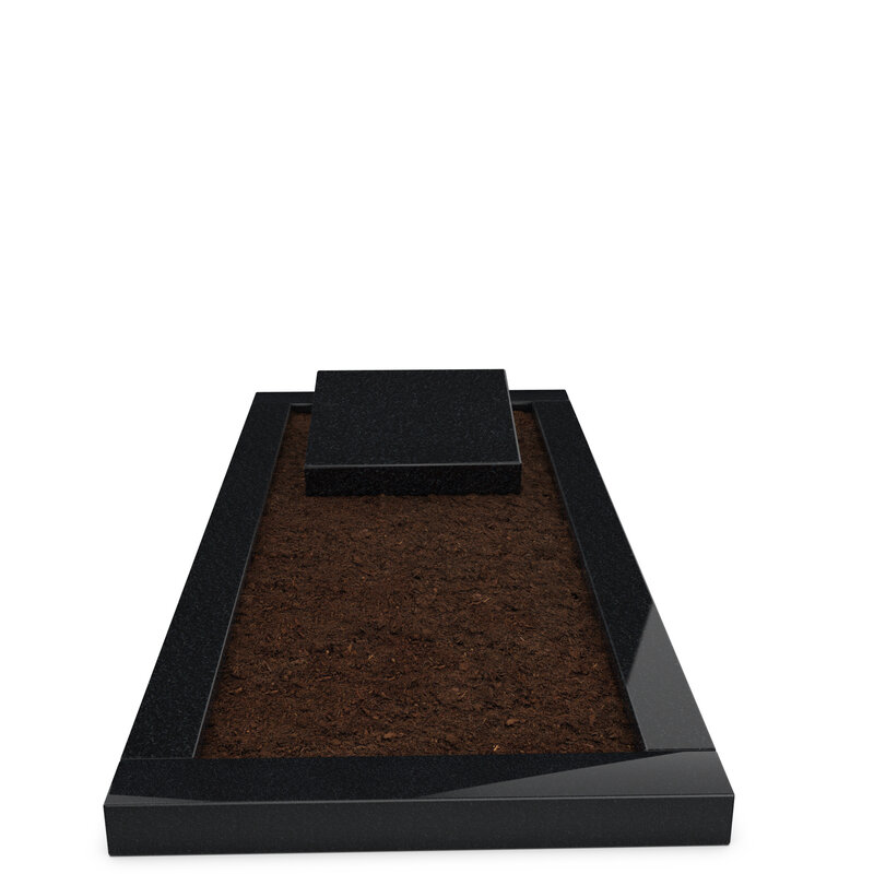 Liggende grafsteen Zwart Graniet met omranding en grond