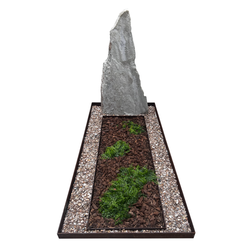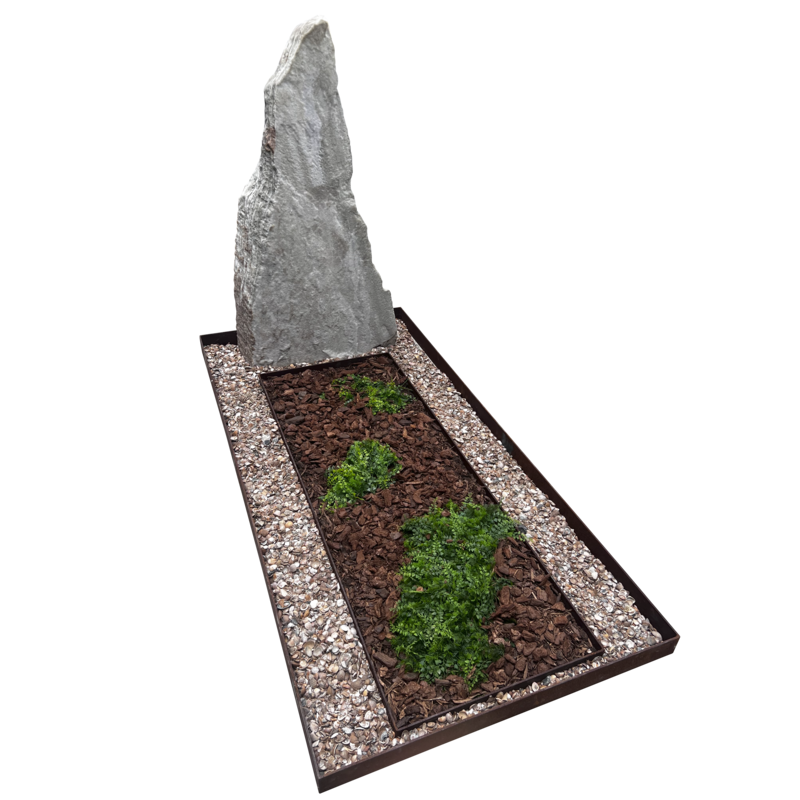 Ruwe grafsteen met extra groot plantenvak en cortenstalen omranding