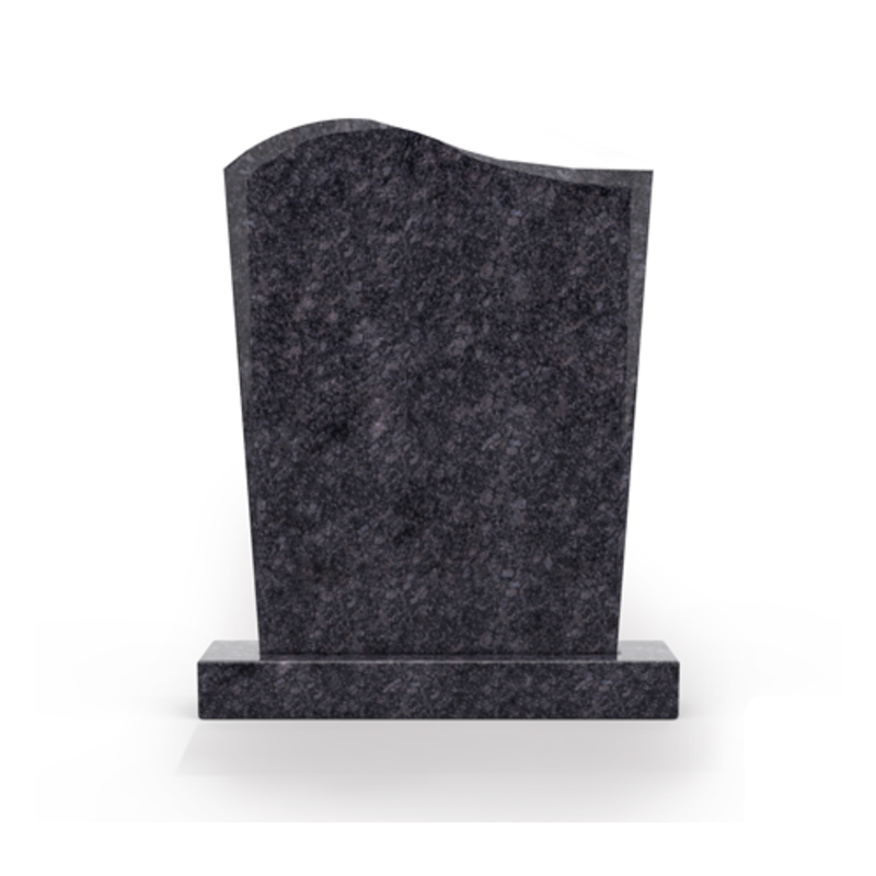 Het graniet Steel Grey is donker grijs van kleur van verschillende licht en donkergrijze kleurnuances. Een staande grafsteen van Steel Grey graniet blijft mooi van kleur ook na jaren op de begraafplaats. Het golfmodel aan de bovenzijde van de letterplaat geeft een elegante uitstraling aan de grafsteen. Voor de tekst adviseren wij om op het Steel Grey graniet de kleur zilver of wit te kiezen. Deze kleuren geven het grootste contrast waardoor de tekst het beste leesbaar is.