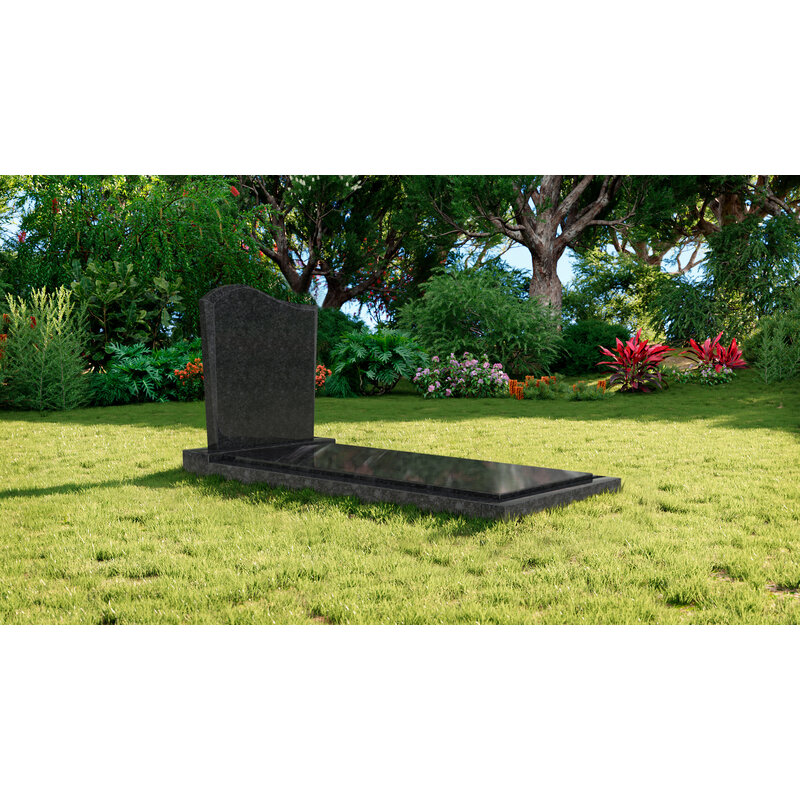 Staande grafsteen model 'Golf' met afdekplaat in de kleur Steel Grey