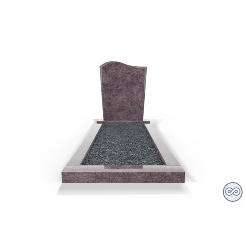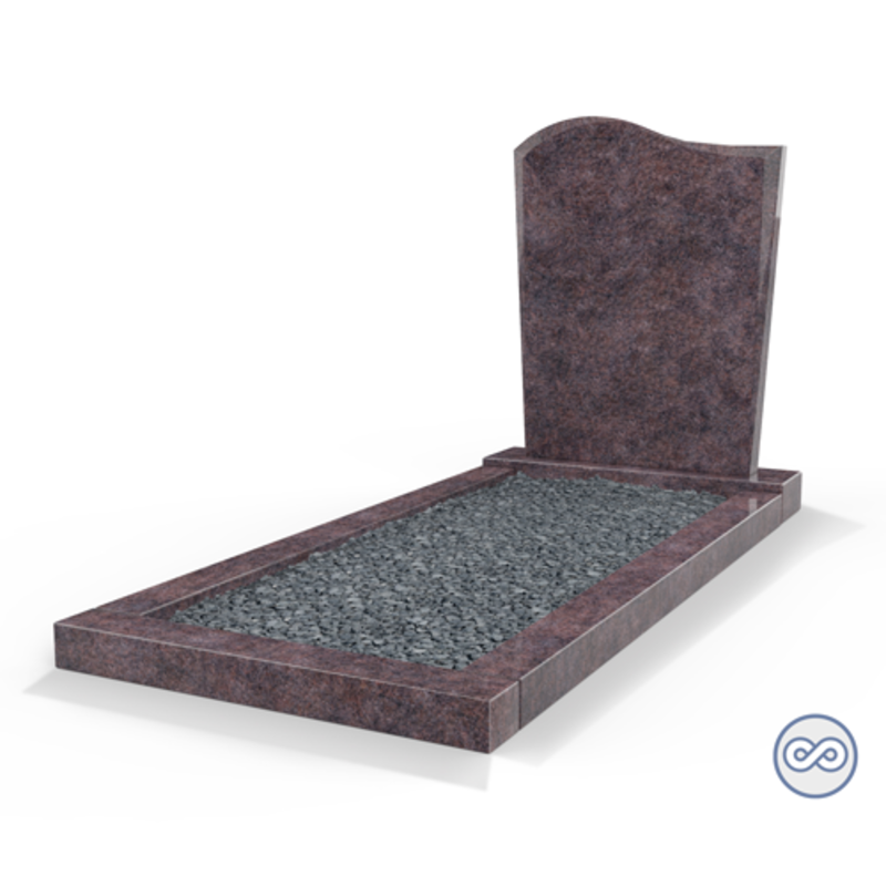 Staande grafsteen model 'Golf' met omranding en donker grind in de kleur Himalaya Blue