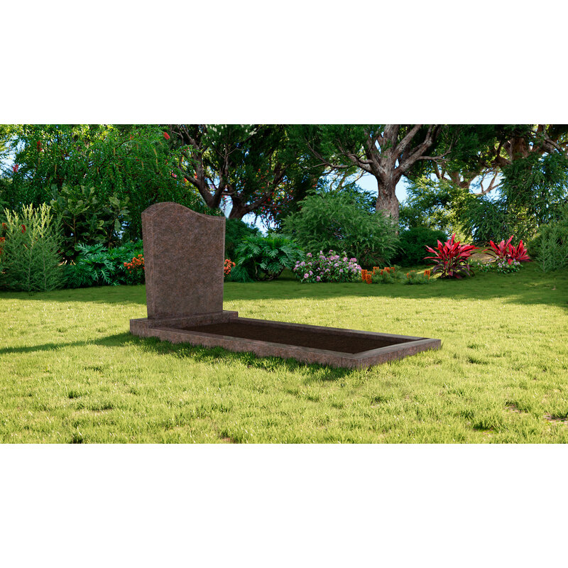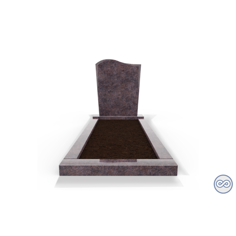 Staande grafsteen model 'Golf' met omranding en grond in de kleur Himalaya Blue