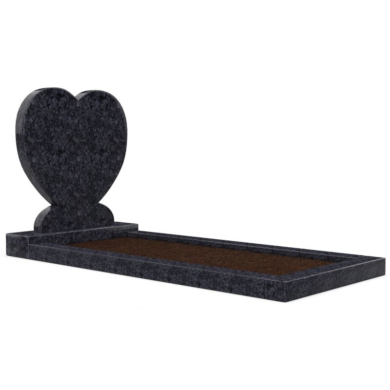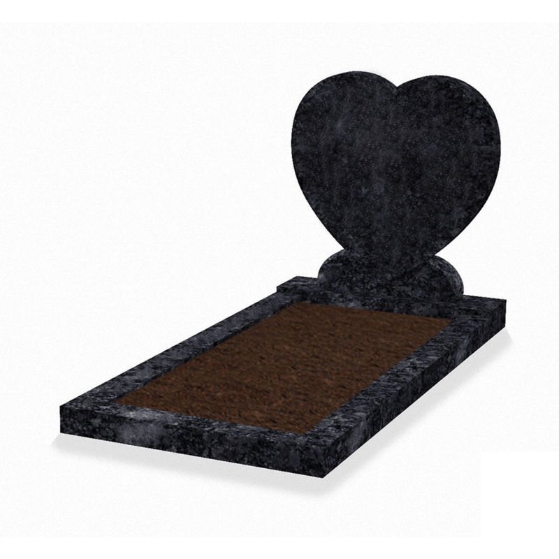 Staande grafsteen 'hartmodel' met omranding en grond in de kleur Steel Grey