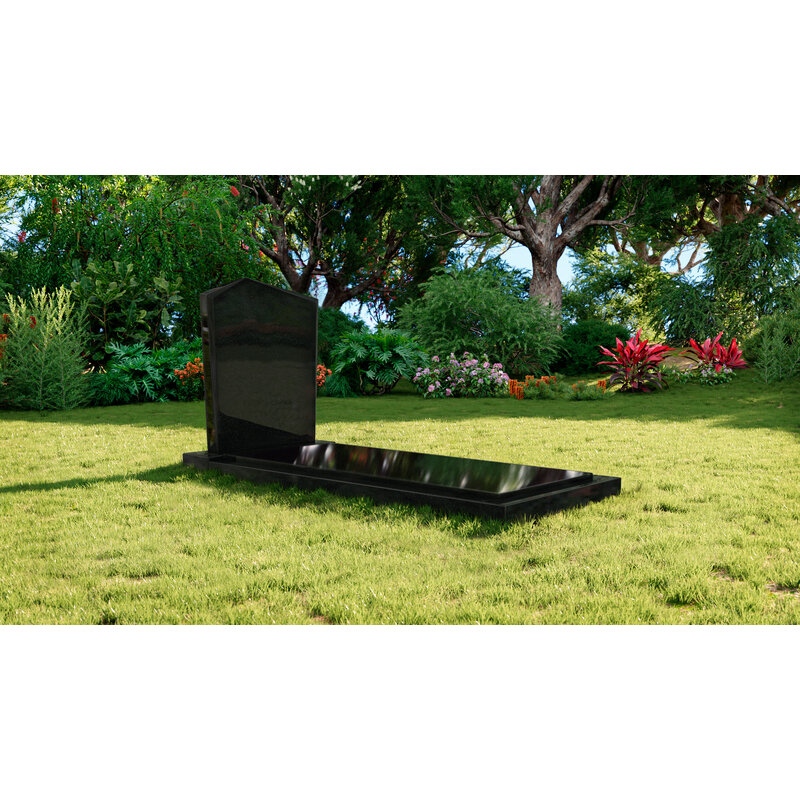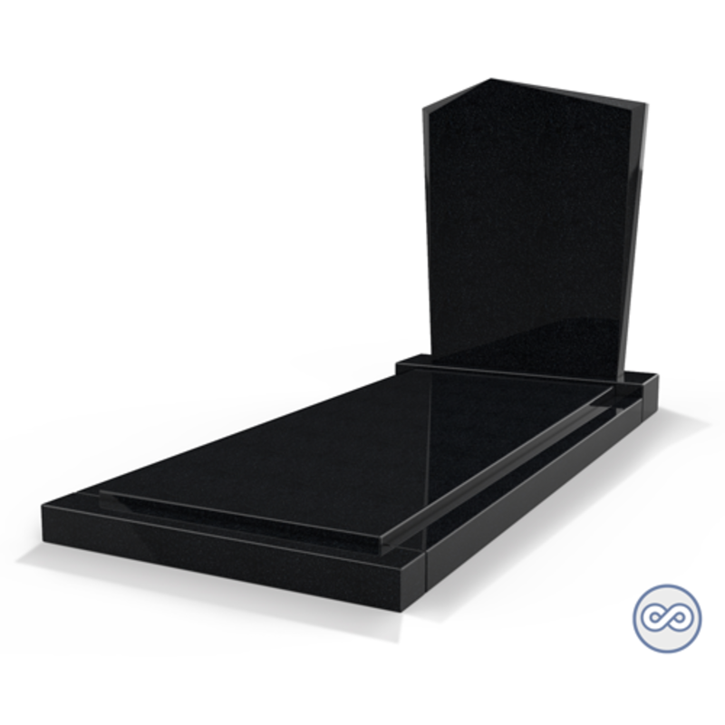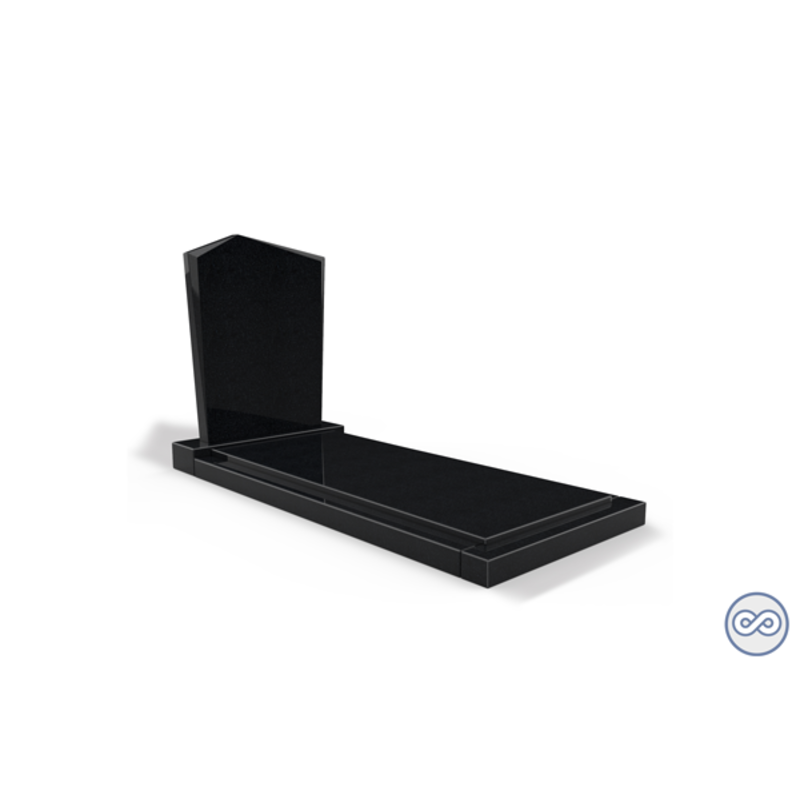 Staande grafsteen model 'Modern' met afdekplaat in de kleur Zwart Graniet