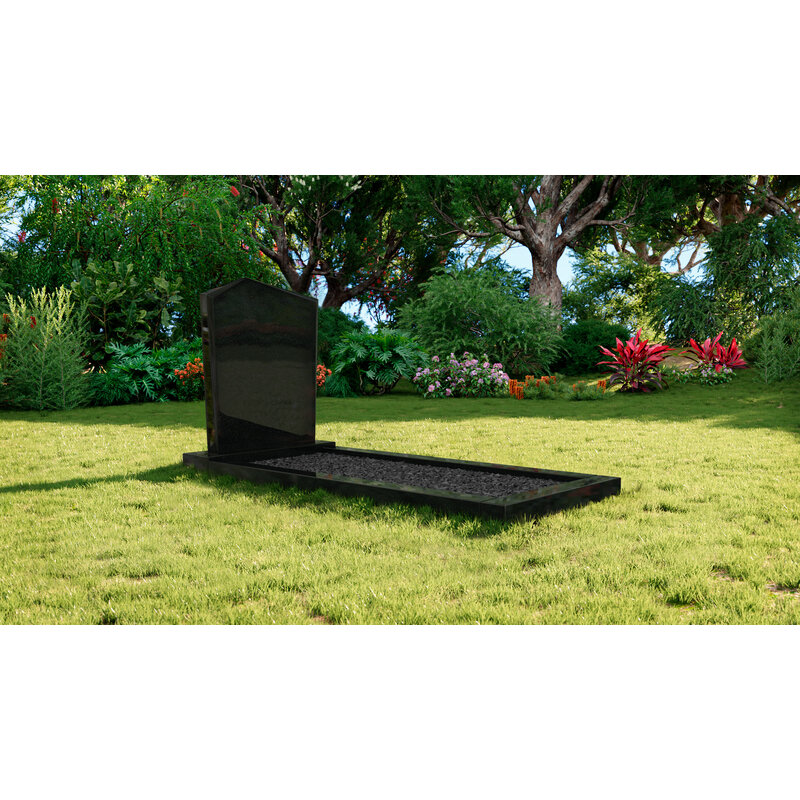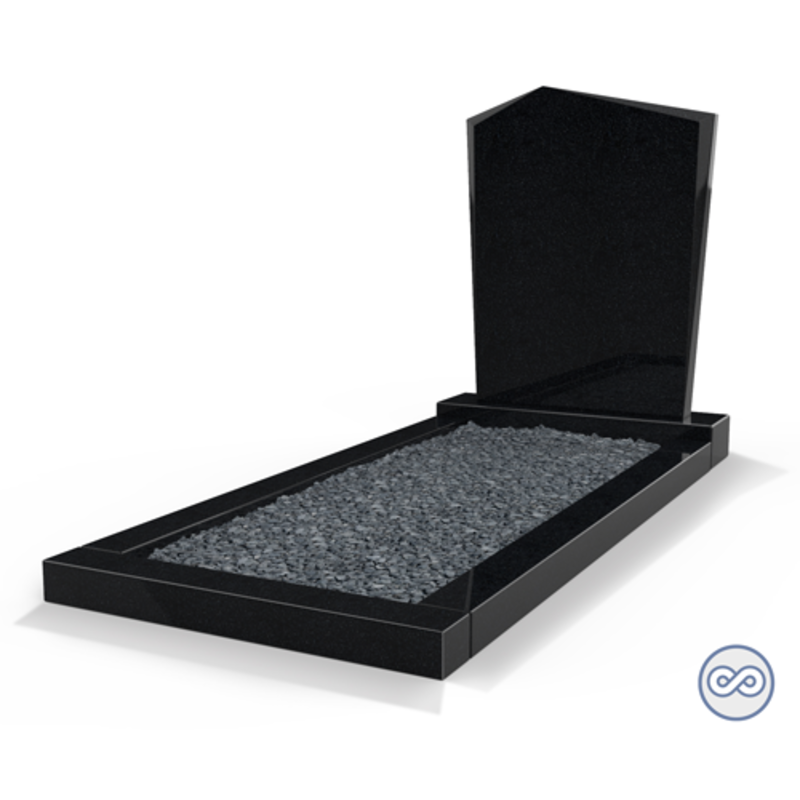 Staande grafsteen model 'Modern' met omranding en donker grind in de kleur Zwart Graniet