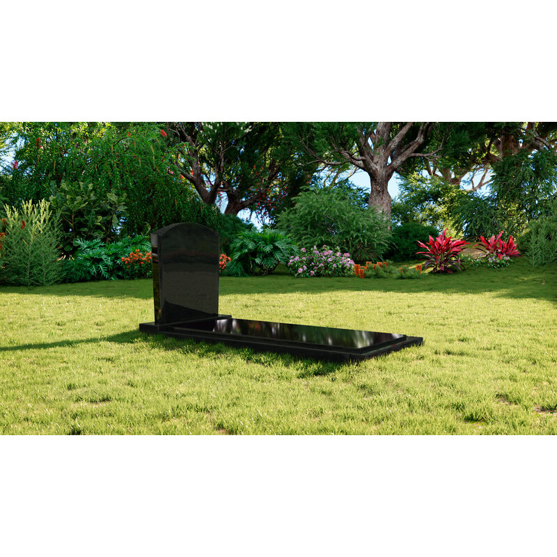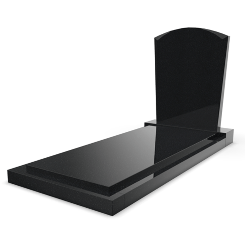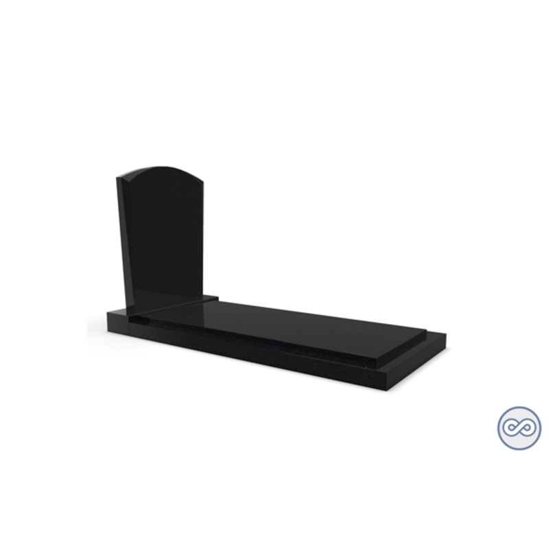 Staande grafsteen model 'Toog' met afdekplaat in de kleur Zwart Graniet