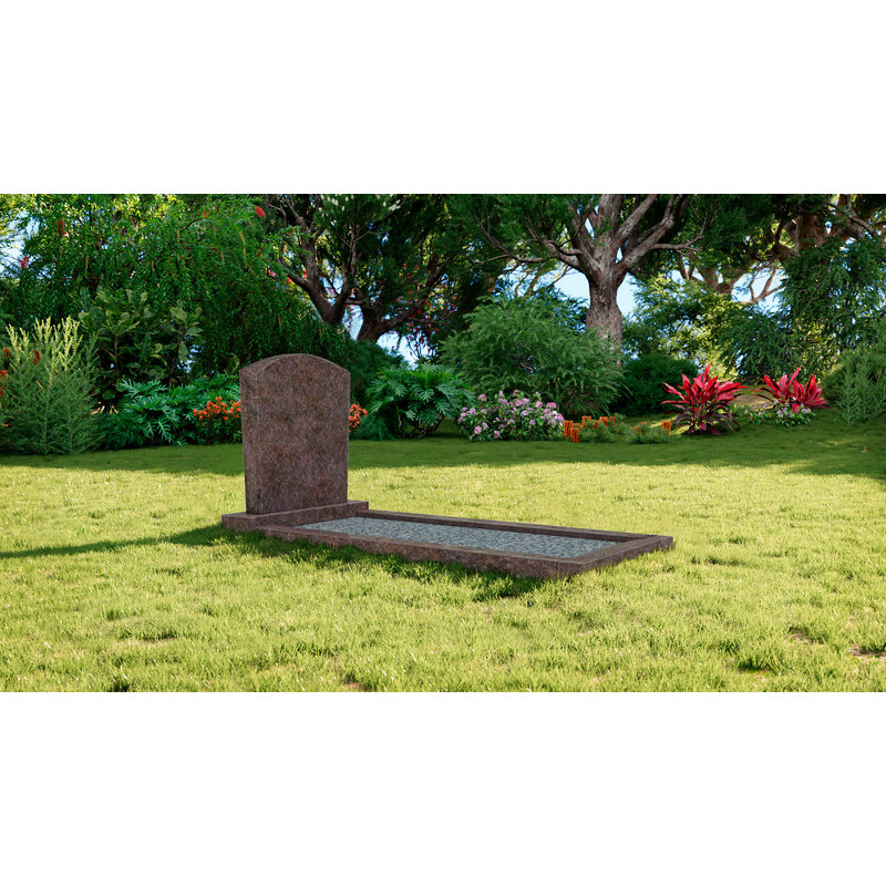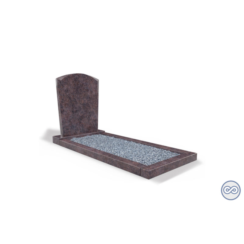 Staande grafsteen model 'Toog' met omranding en licht grind in de kleur Himalaya Blue