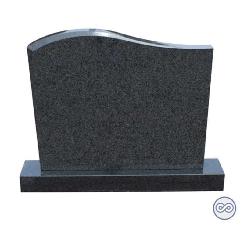 Staande grafsteen met golf model op voetstuk. De afmetingen zijn 120x95x8 cm.